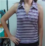 Purple White and Silver Stripes Collar Tank Top